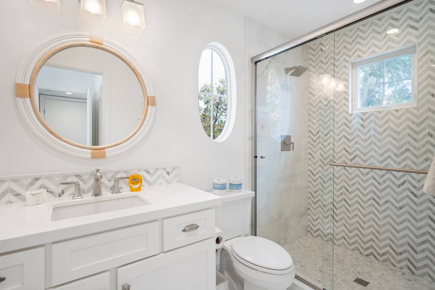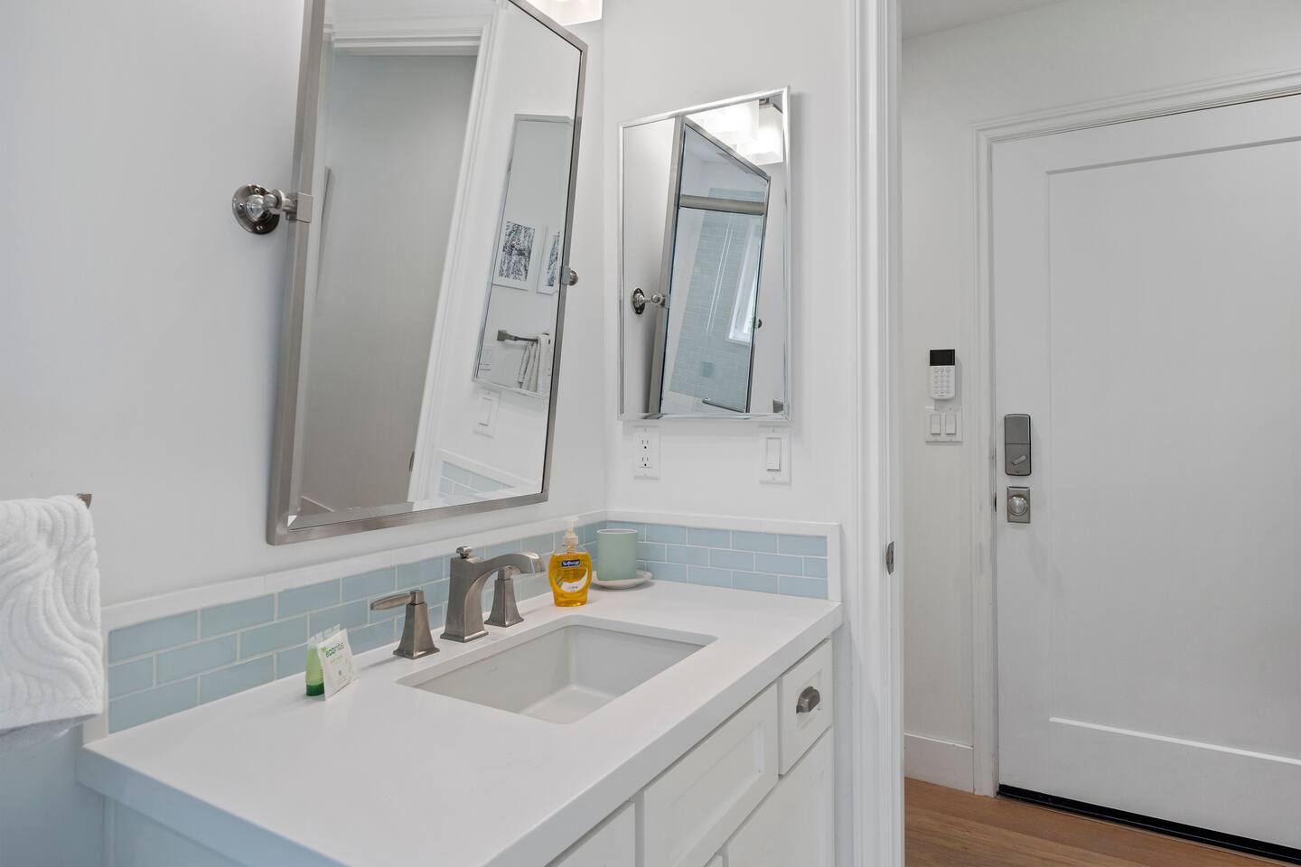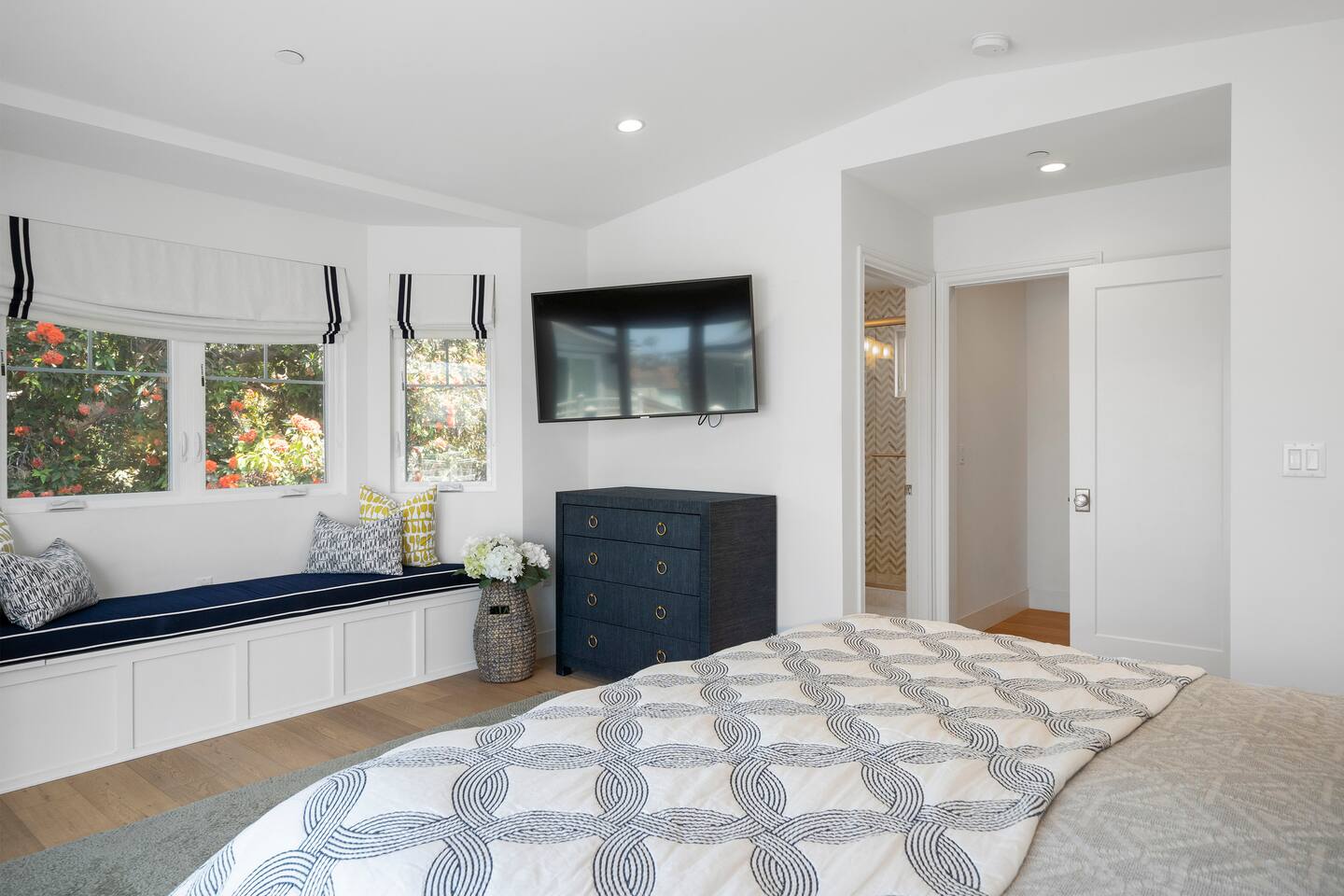 GROUND LEVEL (parking + bedroom 1) Make your way into the gated entry of the home to find a BBQ area just past the front door. Once you enter the home you will see the first bedroom with a queen-sized bed & ensuite bathroom. The room is also equipped with a SMART TV. Just to the right is the direct access to the attached two-car garage where you will find some beach equipment such as boogie boards, beach chairs & sand toys for the little ones. SECOND LEVEL (main living area- kitchen, living room, dining area, sun deck, half ba, W/D) Just ahead the stairs will take you up to our spacious & thoughtfully designed main living area of the home. There is a natural flow between the kitchen, living room, dining area, & out of the sliding glass doors to the sun deck. This space has been maximized to allow everyone in your group to gather comfortably. The attention to detail is second to none. The kitchen is an absolute chef’s dream. Equipped with gorgeous marble countertops, a walk-in pantry & all high-end stainless steel Viking brand appliances including a modern dishwasher, oversized refrigerator/freezer, and 6 burner stove there is nothing you can’t whip up! The center island with pendant lighting gives you additional counter space to cook as well as two bar seats. From here, you have a large dining table that seats six. The living room is centered around a gorgeous gas fireplace ready to be fired upon those breezy nights. This is the perfect place to wind down & enjoy a show on the Samsung SMART TV (complimentary HBO, Showtime, & STARZ) mounted above the fireplace or to listen to your favorite tunes on the built-in SONOS speakers that play throughout the second & third level. Off of the living room, there are sliding glass doors that open to the sun deck with additional seating to enjoy the fresh air. Also on this floor, you will find a half bath & washer/dryer. THIRD LEVEL (master suite) Coming up the stairs to the third floor you are in your own private retreat. This entire floor is dedicated to being the primary suite with your very own secluded ocean view balcony to enjoy your morning coffee or evening glass of wine. This space also features an ensuite bath, surround shower, walk-in closet, window seat, SMART TV, & SONOS sound system. PARKING There is an attached two-car garage able to fit two full-sized vehicles side by side. There is additional parking available on the surrounding neighborhood streets. (Please be aware of street sweeping & time restrictions.) SLEEPING ARRANGEMENTS (sleeps 6 people) - Master Bedroom (entire third level) | 1 King bed - Bedroom 2 (ground level) | 1 Queen bed - Living Room (second level) | 1 Queen Sofa Sleeper OUTDOOR + OTHER FEATURES - Central Heating & Air Conditioning System for the entire home - Built-in SONOS music system (second + third levels) - Laundry room with full-sized, side by side, washer & dryer on the ground floor - Outdoor BBQ on the ground floor patio - One block from La Jolla Shores' main street (Avenida de la Playa) with many shops & restaurants - Walking distance (0.2 mi) to La Jolla Swim & Tennis Club - Beach equipment- boogie boards, beach chairs, & sand toys - Pack n' Play Guest access As our guests, you will have access to the entire home. We will leave you with detailed instructions on how to access the home through the electronic lock system. Our team will be available 24/7 to answer any questions or issues that arrive. Other things to note Please keep in mind, that this is a vacation home not a hotel. Prior to booking with us, we kindly request that you review our House Rules to ensure you will be happy with your stay. We look forward to hosting you on your next trip to La Jolla Shores!